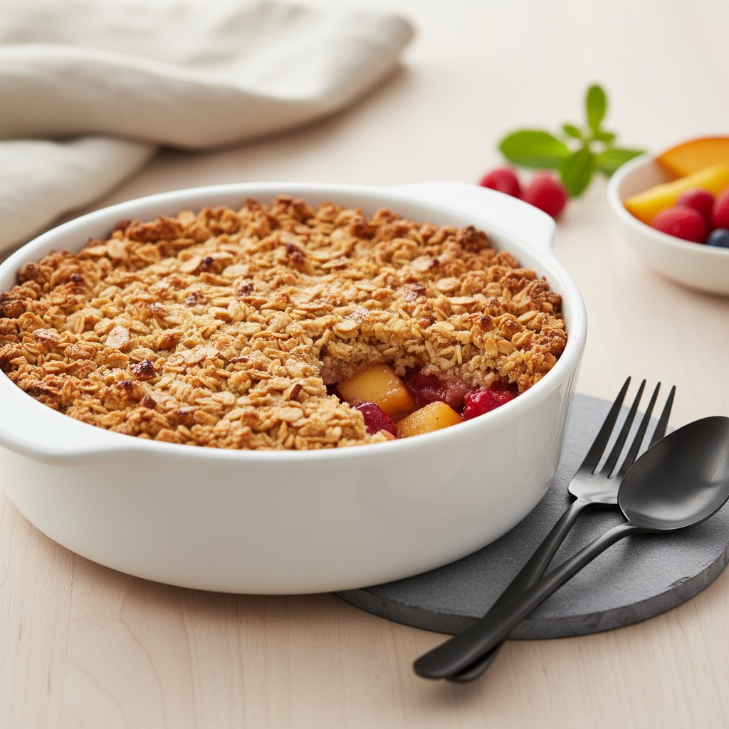 Découvrez une version équilibrée et croustillante du crumble, associant des fruits de saison juteux à une garniture à base de flocons d’avoine. Ce dessert simple et réconfortant est parfait pour une fin de repas légère ou un goûter gourmand. Originaire de la cuisine britannique, le crumble est ici revisité pour un apport en fibres et une texture irrésistible.