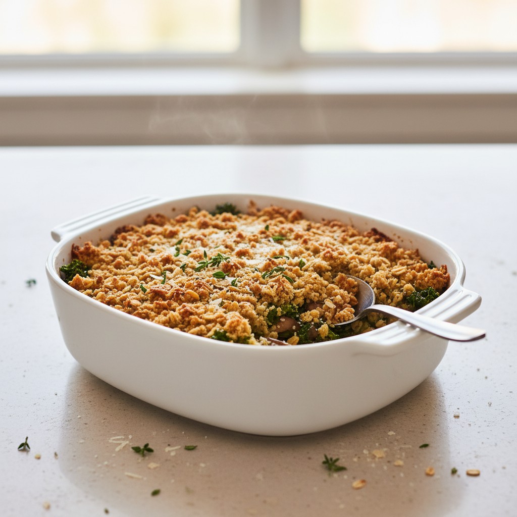 Découvrez une recette originale de crumble salé associant le chou kale et les champignons. Ce plat équilibré et savoureux est parfait pour un repas végétarien ou en accompagnement. Le croustillant du crumble contraste délicieusement avec la tendreté des légumes.
