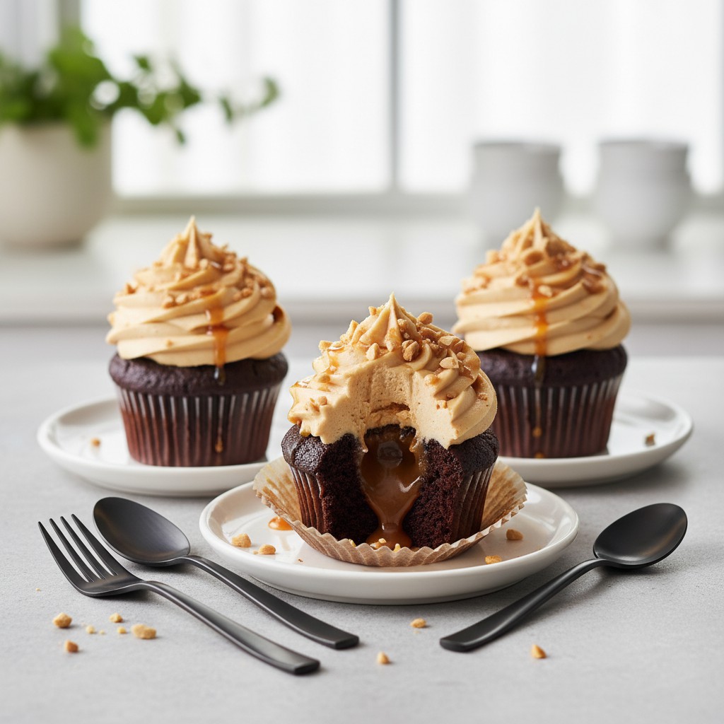 Ces cupcakes au caramel façon Snickers allient la gourmandise du chocolat, la douceur du caramel et le croquant de la cacahuète, pour une expérience inspirée de la célèbre barre chocolatée. La base moelleuse au cacao accueille un cœur coulant de caramel maison, surmonté d’un glaçage onctueux au beurre de cacahuète et d’une touche de cacahuètes grillées. Cette recette, accessible mais technique, met en avant l’équilibre des textures et des saveurs, tout en permettant des alternatives plus légères. Les Snickers, créés dans les années 1930 aux États-Unis, sont devenus un symbole de la confiserie gourmande ; cette version cupcake revisite ce classique en format individuel, parfait pour un goûter ou une occasion festive.