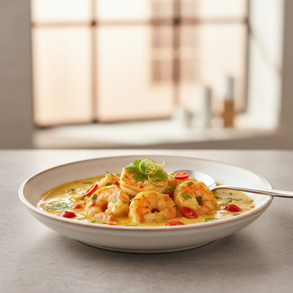 Ce curry de crevettes au lait de coco est un plat emblématique des cuisines d’Asie du Sud-Est, notamment de Thaïlande et d’Inde du Sud. Il séduit par son équilibre entre douceur, épices et fraîcheur. La recette met en valeur la tendreté des crevettes, la rondeur du lait de coco et la vivacité des aromates. Accessible et rapide, ce plat est idéal pour un repas convivial, tout en offrant une belle richesse nutritionnelle grâce aux protéines maigres et aux bons lipides du lait de coco. L’astuce réside dans la maîtrise de la cuisson des crevettes et l’ajustement des épices selon votre goût.