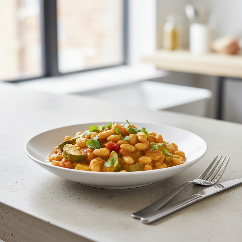 Ce curry de haricots blancs et courgettes est un plat végétarien complet, savoureux et nourrissant, inspiré des traditions culinaires indiennes et méditerranéennes. Il met en valeur la douceur des courgettes et la texture fondante des haricots blancs, relevées par un mélange d’épices équilibré. Idéal pour un repas sain, économique et rassasiant, ce plat offre une excellente source de protéines végétales et de fibres, tout en restant léger. Parfait pour découvrir la richesse des currys maison sans complexité technique, il s’adapte facilement aux saisons et aux préférences alimentaires.