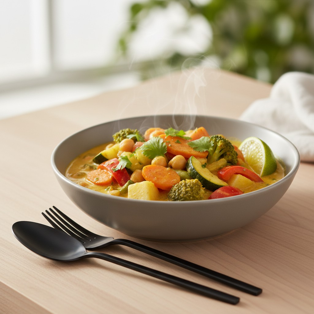 Ce curry de légumes au vin blanc marie la chaleur des épices indiennes à la fraîcheur et à la complexité aromatique du vin blanc sec. Plat végétarien équilibré, il met en valeur la diversité des légumes de saison, tout en offrant une sauce onctueuse et parfumée. Le vin blanc, peu traditionnel dans les currys indiens, apporte une touche européenne subtile, adoucissant les épices et rehaussant les saveurs végétales. Ce plat, accessible et convivial, s’inscrit dans une démarche de cuisine maison saine, sans sacrifier le goût ni la texture. Il s’inspire des adaptations modernes du curry, où l’on ose des alliances inédites pour renouveler les classiques.