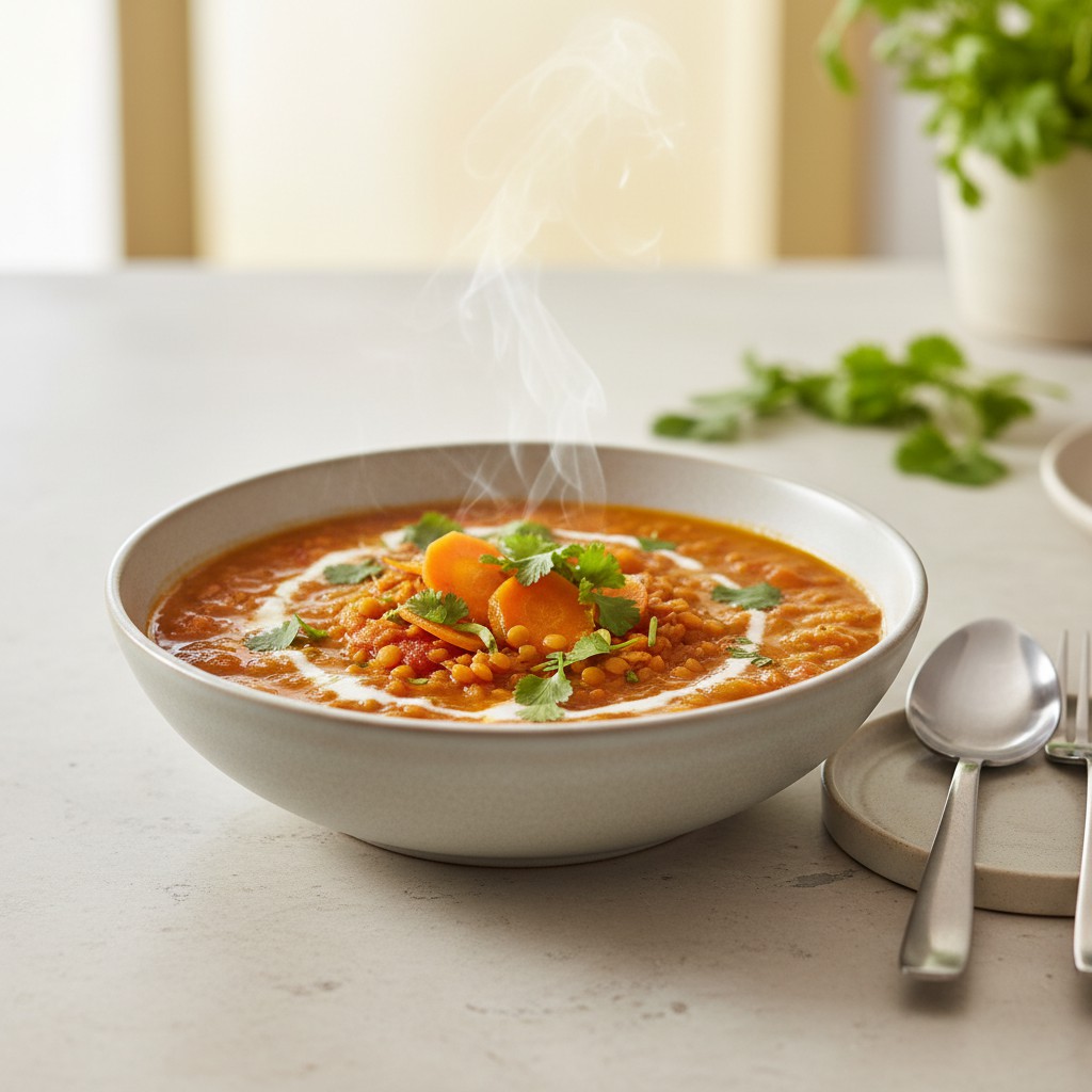 Ce curry de lentilles et carottes est un plat végétarien complet, nourrissant et parfumé, inspiré des traditions culinaires indiennes. Il marie la douceur des carottes à la richesse des lentilles, relevées par un mélange d’épices équilibré. Facile à préparer, il offre une excellente source de protéines végétales, de fibres et de micronutriments, tout en restant digeste et accessible. Ce plat, souvent appelé « dal » dans la cuisine indienne, est apprécié pour sa simplicité, sa capacité à rassasier et sa polyvalence : il se déguste aussi bien seul qu’accompagné de riz ou de pain plat. Idéal pour un repas sain, économique et savoureux, il met en valeur la cuisson douce des légumes et l’importance du juste dosage des épices.