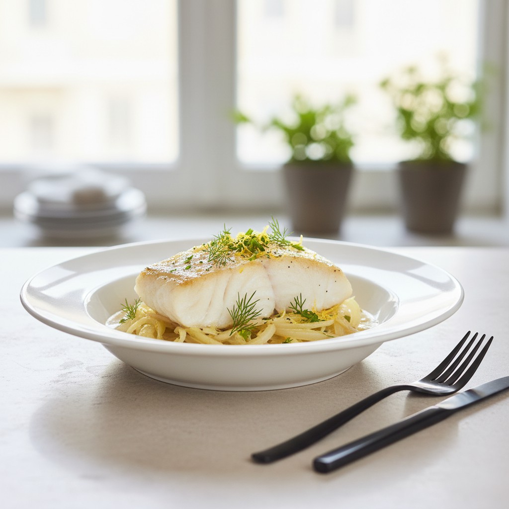 Ce plat met en valeur la délicatesse du cabillaud, sublimée par la fraîcheur anisée du fenouil et la profondeur aromatique du vin blanc. Typique de la cuisine méditerranéenne, cette recette allie légèreté, équilibre nutritionnel et authenticité. Elle est idéale pour un repas raffiné mais accessible, où chaque geste technique vise à préserver la texture nacrée du poisson et à exalter les saveurs naturelles des ingrédients. Le cabillaud, poisson maigre et riche en protéines, s’accorde parfaitement avec le fenouil, légume digestif et source de fibres, pour une assiette saine et savoureuse.