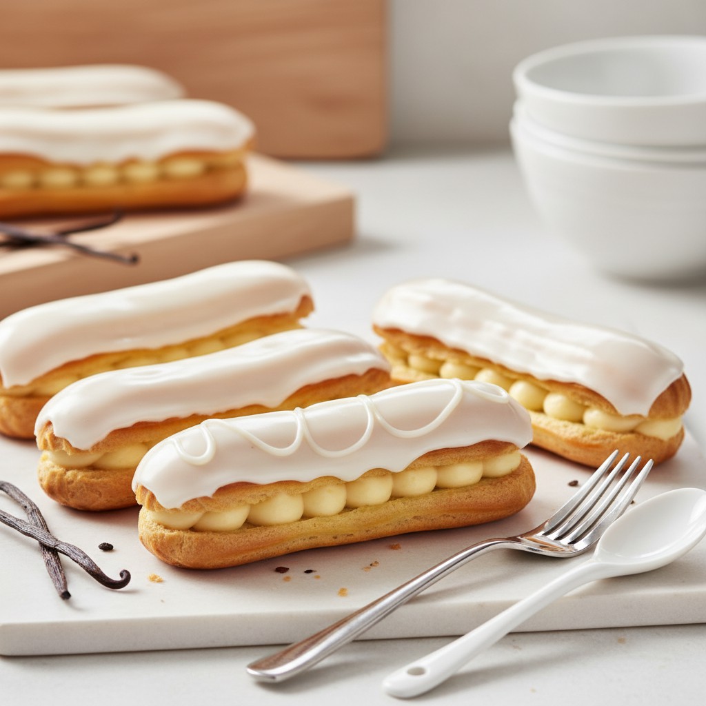 L’éclair à la vanille est une pâtisserie emblématique de la tradition française, composée d’une pâte à choux légère, d’une crème pâtissière onctueuse à la vanille et d’un glaçage brillant. Cette recette, née au XIXe siècle, incarne l’équilibre entre technicité et gourmandise. Elle met en valeur la maîtrise des textures (choux bien développis, crème lisse, glaçage fondant) et la subtilité aromatique de la vanille. Accessible à qui suit chaque étape avec rigueur, elle offre un résultat authentique, sans compromis sur le goût ni la qualité nutritionnelle (modération du sucre, alternatives possibles).