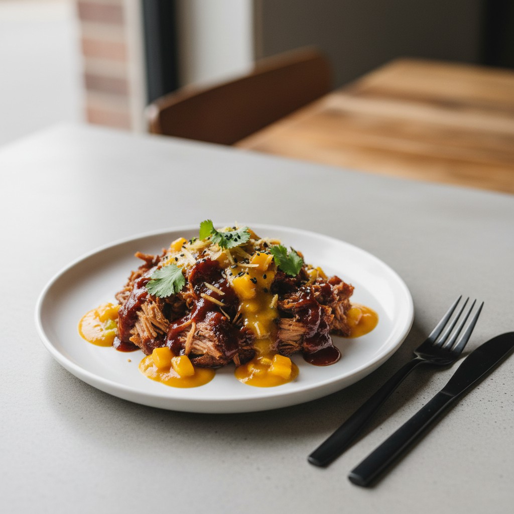 Effiloché de porc au barbecue avec sauce à la mangue