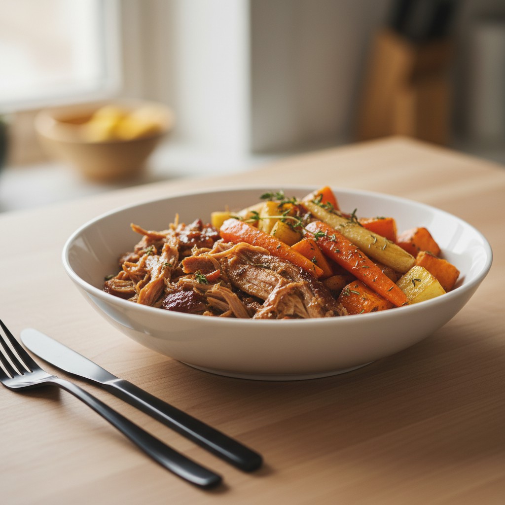 Découvrez une recette d’effiloché de porc fondant accompagné de légumes racines rôtis au four. Ce plat réconfortant et équilibré marie des saveurs riches et des textures variées, parfait pour un repas convivial ou un dîner en famille. Inspiré des traditions de cuisson lente, il garantit une viande juteuse et des légumes caramélisés.