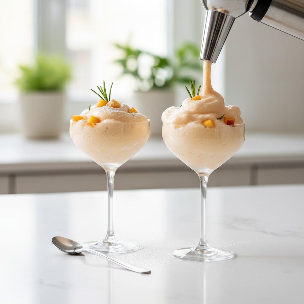 Découvrez une recette originale et raffinée d’émulsion de pêches au romarin réalisée avec un siphon. Cette préparation légère et parfumée est idéale pour sublimer vos desserts ou accompagner des plats sucrés-salés. Inspirée des techniques modernes, elle allie simplicité et élégance.