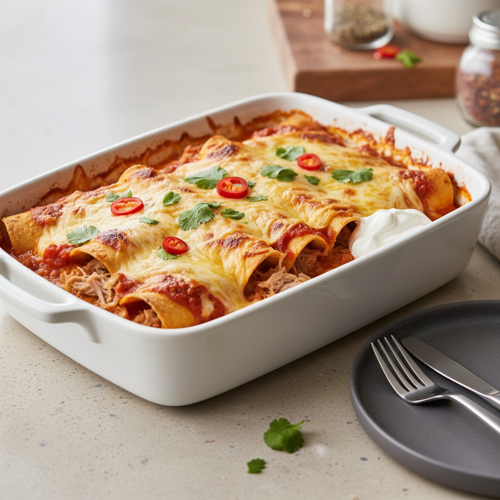 Les enchiladas au porc effiloché et piments sont un plat mexicain traditionnel, riche en saveurs et en épices. Cette recette combine la tendreté du porc mijoté avec la chaleur des piments et la douceur des tortillas, le tout gratiné avec du fromage fondant. Parfait pour un repas convivial et réconfortant.