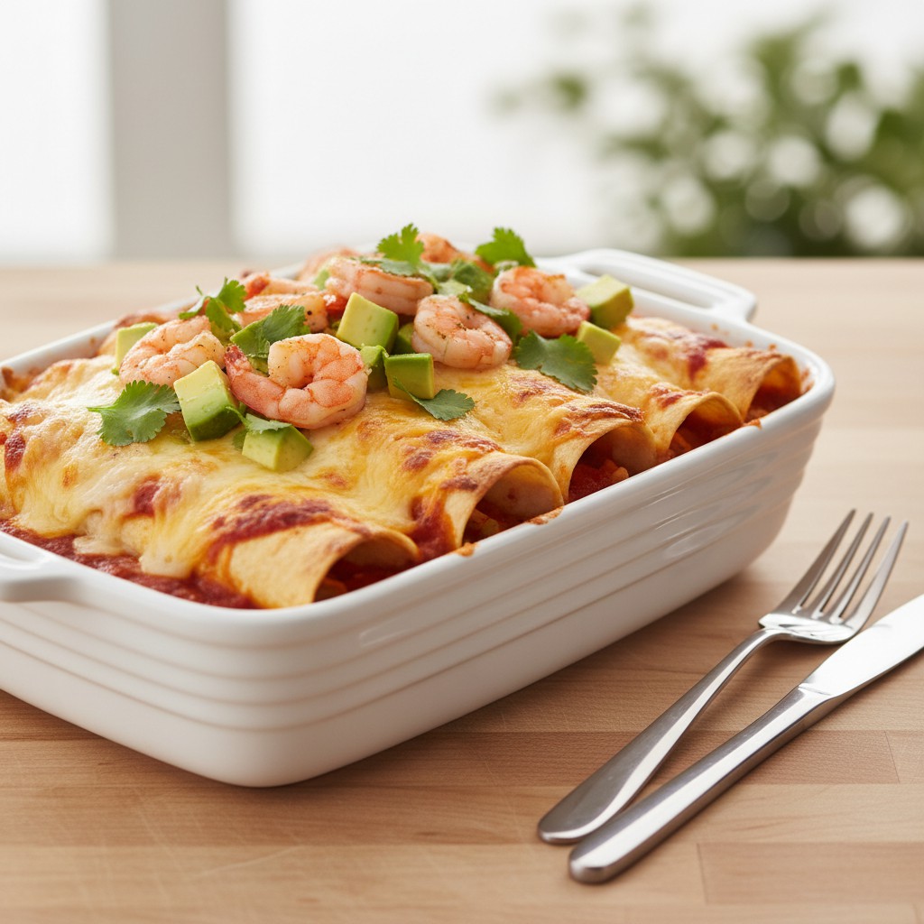 Découvrez cette recette d’enchiladas aux crevettes et avocat, un plat mexicain savoureux et équilibré. Parfait pour un dîner convivial, ce mélange de crevettes juteuses, d’avocat crémeux et de sauce épicée est enveloppé dans des tortillas moelleuses et gratiné au four. Une recette simple et rapide à réaliser, idéale pour les amateurs de cuisine maison.