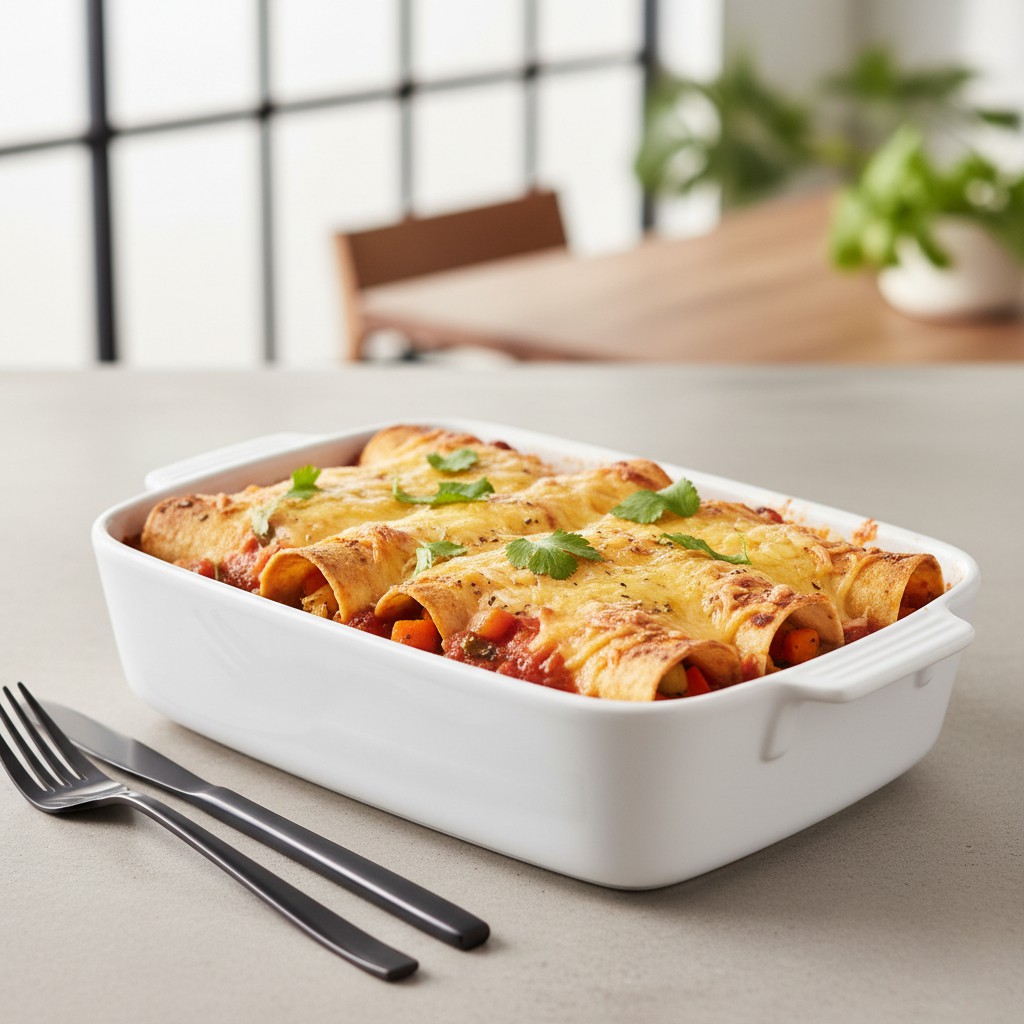 - Sortez les enchiladas du four et garnissez-les de feuilles de coriandre fraîche avant de servir. Accompagnez-les d’une salade verte ou de guacamole pour un repas complet.