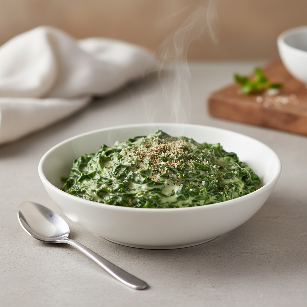 Les épinards à la crème et noix de muscade sont un grand classique de la cuisine française, appréciés pour leur texture onctueuse et leur saveur subtilement relevée. Cette recette met en valeur la douceur des épinards frais, sublimée par une crème légère et une pointe de muscade, épice traditionnelle qui apporte profondeur et chaleur. Plat d’accompagnement polyvalent, il accompagne aussi bien les viandes blanches que les poissons, et permet de réconcilier petits et grands avec les légumes verts. L’origine de cette préparation remonte à la cuisine bourgeoise du XIXe siècle, où la crème était utilisée pour adoucir l’amertume des légumes. Ici, l’équilibre nutritionnel est respecté : la crème est dosée pour l’onctuosité sans excès, et des alternatives plus légères sont proposées pour s’adapter à tous les régimes.