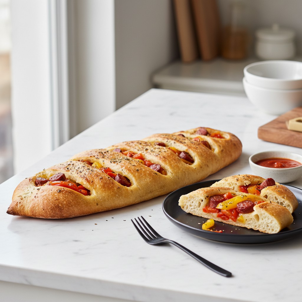 La fougasse au chorizo et poivrons est une spécialité provençale revisitée avec des saveurs méditerranéennes. Cette recette associe la douceur des poivrons grillés à la puissance du chorizo, le tout dans une pâte moelleuse et parfumée. Idéale pour un apéritif ou un repas convivial.