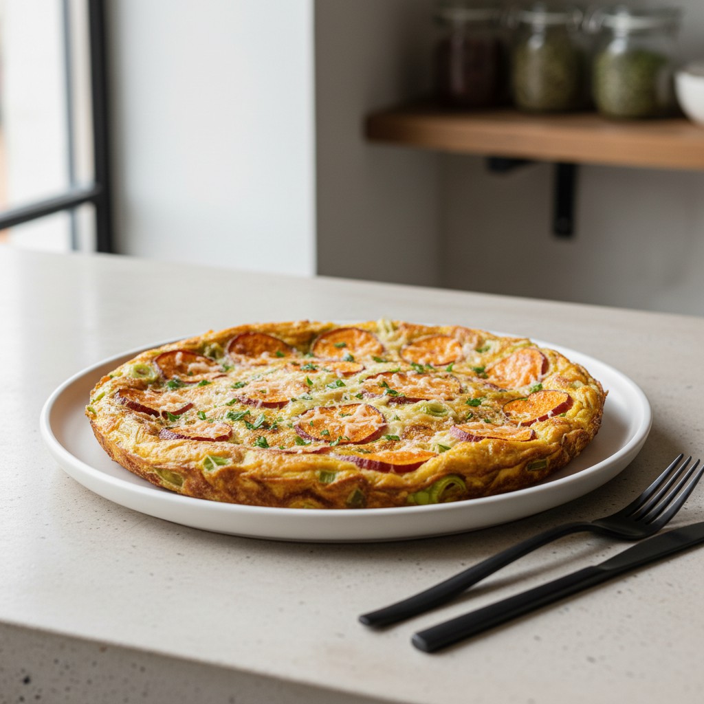 Cette frittata à la patate douce et aux poireaux est une recette simple et équilibrée, parfaite pour un repas rapide ou un brunch. Inspirée de la cuisine italienne, elle combine la douceur de la patate douce avec la saveur délicate des poireaux, le tout dans une texture moelleuse grâce aux œufs. Facile à personnaliser, elle peut être adaptée avec des herbes ou des fromages selon vos envies.