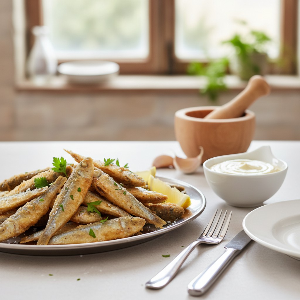 La friture de petits poissons, accompagnée de son aïoli maison, est un classique méditerranéen qui célèbre la simplicité et la fraîcheur des produits de la mer. Cette recette, ancrée dans la tradition provençale, met en valeur le goût délicat des poissons entiers (éperlans, goujons, ou petits rougets) enrobés d’une fine panure croustillante. L’aïoli, sauce à l’ail et à l’huile d’olive, apporte une touche crémeuse et relevée, parfaite pour sublimer la friture. Accessible et conviviale, cette préparation invite à partager un moment authentique, tout en respectant l’équilibre nutritionnel grâce à la cuisson rapide et à la richesse en protéines et oméga-3 des poissons.