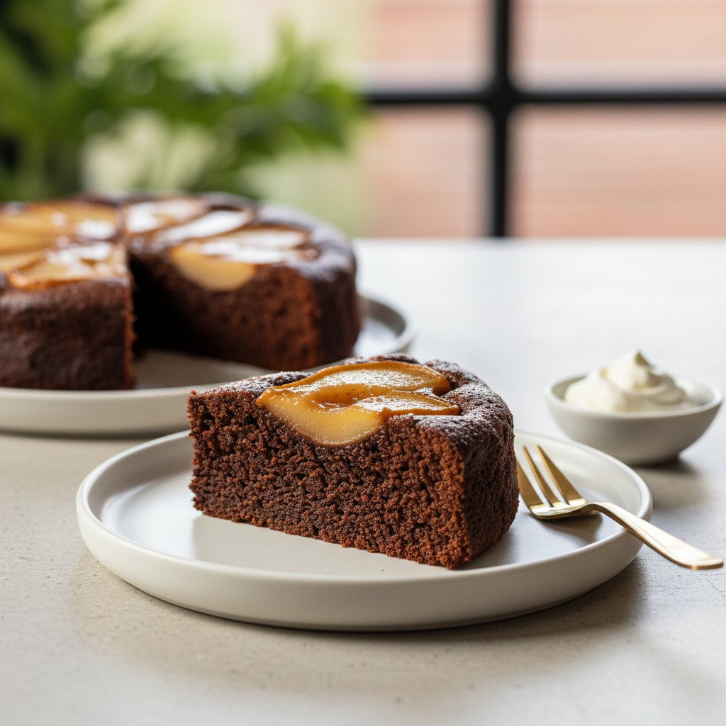 Ce gâteau au chocolat et poires caramélisées marie la richesse du cacao à la douceur fruitée des poires fondantes, relevées par une légère caramélisation. Inspiré des classiques de la pâtisserie française, il offre un équilibre subtil entre moelleux, intensité chocolatée et fraîcheur fruitée. Accessible à tous, il met en avant des techniques simples mais essentielles pour réussir un dessert élégant, sans excès de sucre ni de matières grasses superflues. Idéal pour un goûter ou un dessert raffiné, il valorise la saisonnalité des fruits et la gourmandise raisonnée.