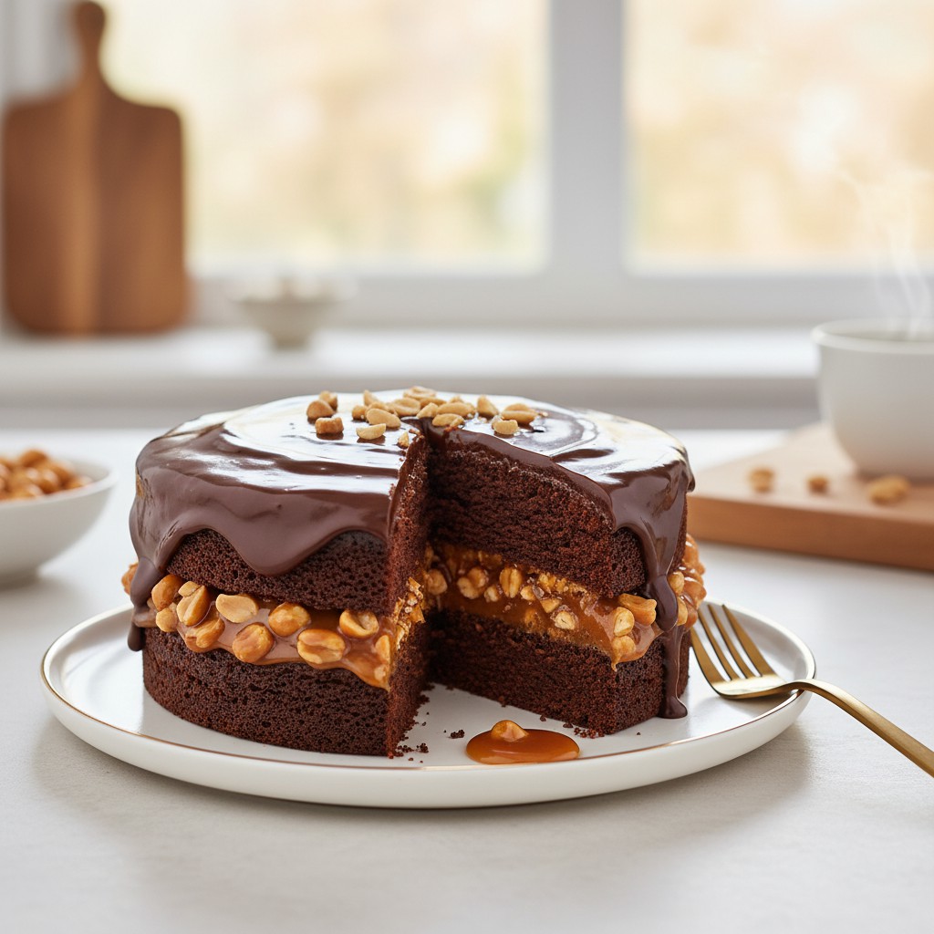 Ce gâteau au chocolat façon Snickers revisite le célèbre chocolat en une pâtisserie gourmande et équilibrée. Il associe un biscuit moelleux au cacao, une couche de caramel fondant, des cacahuètes croquantes et une ganache chocolat onctueuse. L’ensemble offre un jeu de textures et de saveurs rappelant la barre iconique, tout en restant accessible à réaliser à la maison. Cette recette, inspirée de la tradition américaine du layer cake, met l’accent sur l’équilibre entre gourmandise et maîtrise technique, sans excès de sucre ni d’ingrédients gadgets.
