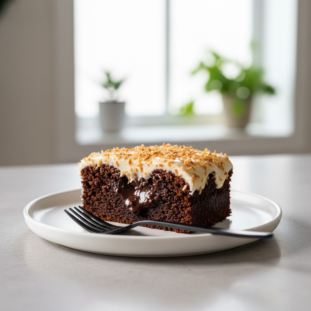Ce gâteau fondant au fudge et noix de coco est une alliance parfaite entre la richesse du chocolat et la douceur exotique de la noix de coco. Facile à préparer, il ravira les amateurs de desserts gourmands et originaux. Inspiré des saveurs tropicales, ce dessert est idéal pour les occasions spéciales ou simplement pour se faire plaisir.