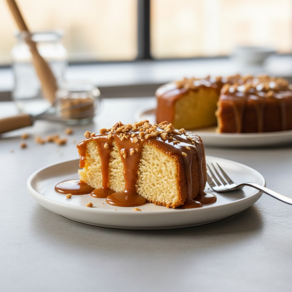 Gâteau moelleux au beurre de cacahuète et caramel maison
