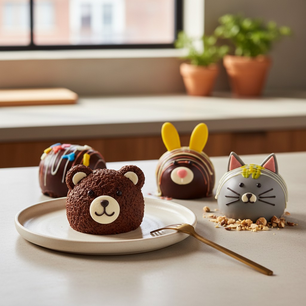- 8. Décorez les gâteaux refroidis avec de la pâte à sucre colorée (oreilles, museaux, yeux) ou du chocolat blanc fondu coloré. Utilisez une poche à douille fine ou un cure-dent pour les détails. Laissez sécher à l’air libre 15 minutes avant de manipuler.