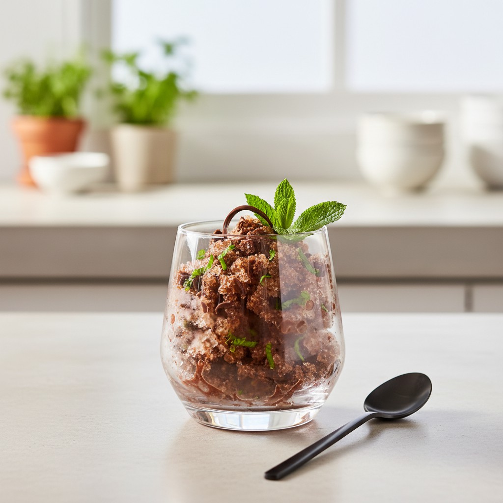 Le granité au Nutella et menthe est une création contemporaine qui marie la gourmandise du célèbre tartinable chocolat-noisette à la fraîcheur végétale de la menthe. Cette recette, inspirée des granités siciliens, revisite le dessert glacé en version ultra-accessible, sans sorbetière ni technique complexe. Elle séduit par sa texture granuleuse, son goût intense et sa simplicité d’exécution. Idéale pour un goûter d’été ou un dessert original, elle permet aussi d’initier petits et grands à la réalisation de glaces maison, tout en maîtrisant les apports en sucre et en matières grasses. L’association Nutella-menthe, peu courante, offre un contraste aromatique surprenant et rafraîchissant.