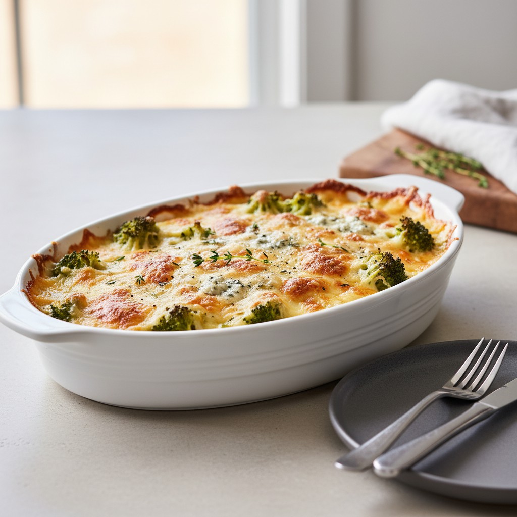 Gratin de brocoli au fromage bleu facile et savoureux
