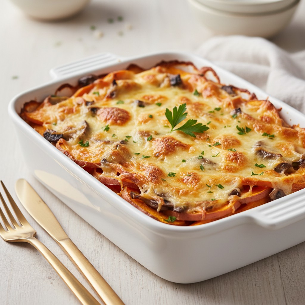 Ce gratin de patate douce et champignons est une recette réconfortante et équilibrée, parfaite pour un repas végétarien ou en accompagnement. La douceur de la patate douce se marie à merveille avec la saveur terreuse des champignons, le tout gratiné avec une couche de fromage fondant. Une recette simple et savoureuse, idéale pour les amateurs de cuisine maison.