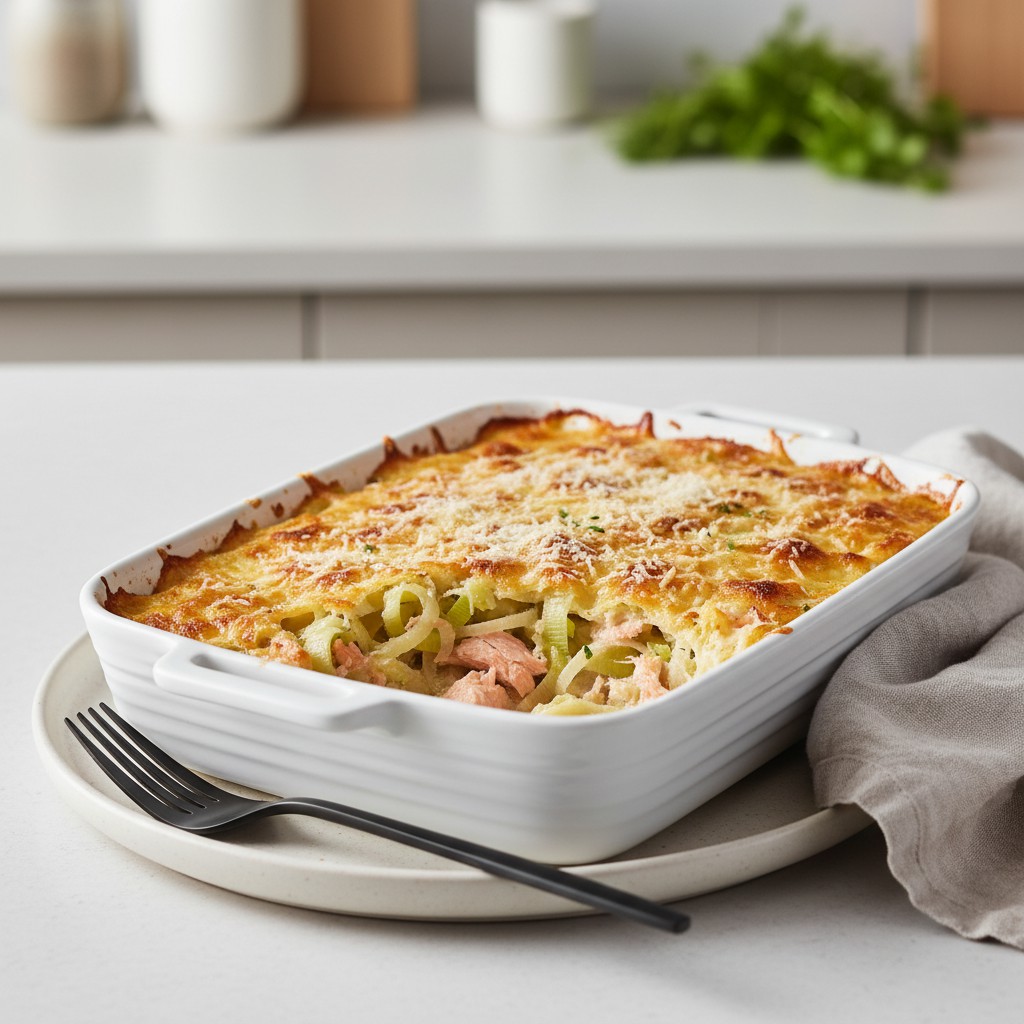Ce gratin de poireaux au saumon est une recette simple et équilibrée, parfaite pour un repas réconfortant. L’association du poireau fondant et du saumon délicatement cuit au four est sublimée par une sauce crémeuse et une couche gratinée dorée. Idéal pour un dîner en famille ou entre amis.
