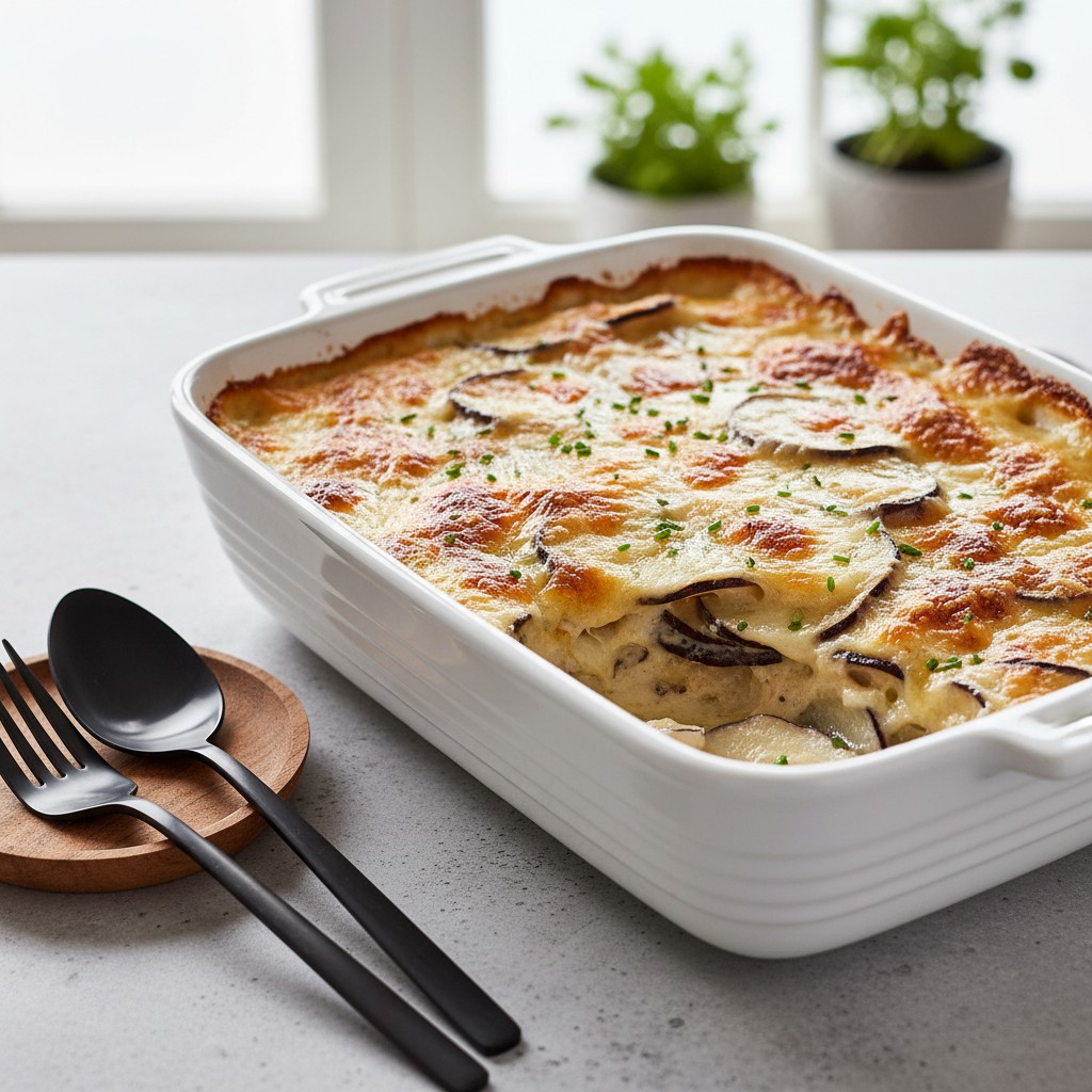 - Sortez le gratin du four et laissez-le reposer 5 minutes avant de servir. Ce plat se déguste chaud, accompagné d’une salade verte ou en accompagnement d’une viande grillée.
