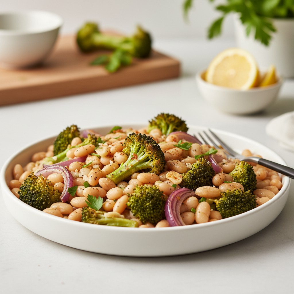 Ce plat associe la douceur fondante des haricots blancs à la texture croquante du brocoli, le tout rôti au four pour révéler des saveurs profondes et légèrement grillées. Idéal pour un repas végétarien équilibré, il met en avant la simplicité des ingrédients et la richesse nutritionnelle des légumineuses. Cette recette s’inspire des traditions méditerranéennes où la cuisson au four sublime les légumes et les légumineuses, tout en restant accessible et rapide à préparer. Parfait pour un dîner sain, rassasiant et sans complexité technique.