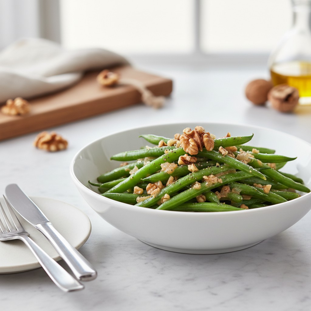 Les haricots verts à la vapeur avec vinaigrette aux noix sont un classique de la cuisine familiale française, alliant simplicité, fraîcheur et équilibre nutritionnel. Cette recette met en valeur la texture croquante des haricots verts cuits juste ce qu’il faut, relevés par une vinaigrette onctueuse aux noix, source de bons acides gras et de saveurs subtiles. Idéale en entrée ou en accompagnement, elle illustre l’art de magnifier un légume de saison sans le masquer, tout en apportant une touche gourmande et authentique. Traditionnellement servie dans de nombreuses régions rurales, cette préparation rappelle l’importance du respect des produits et de la justesse des assaisonnements.