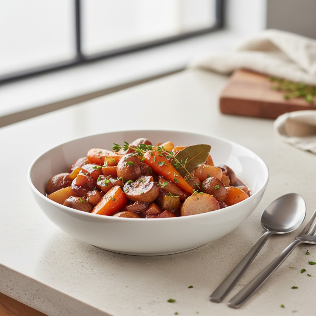 Les légumes braisés au vin rouge sont un classique de la cuisine paysanne européenne, où la technique du braisage sublime la texture et la saveur des légumes racines et de saison. Ce plat, à la fois rustique et raffiné, met en valeur la douceur caramélisée des légumes, relevée par la profondeur aromatique du vin rouge. Il s’agit d’une recette végétarienne équilibrée, idéale pour accompagner une protéine ou constituer un plat principal réconfortant. L’association du vin et des herbes rappelle les traditions bourguignonnes, tout en restant accessible et adaptable selon les saisons.