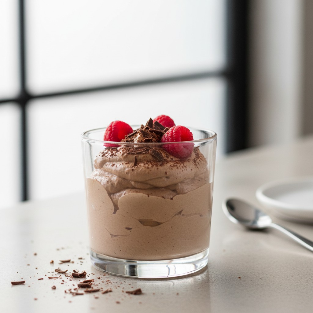 - Servez la mousse bien froide, éventuellement garnie de copeaux de chocolat, de fruits rouges ou d’une pincée de cacao en poudre.