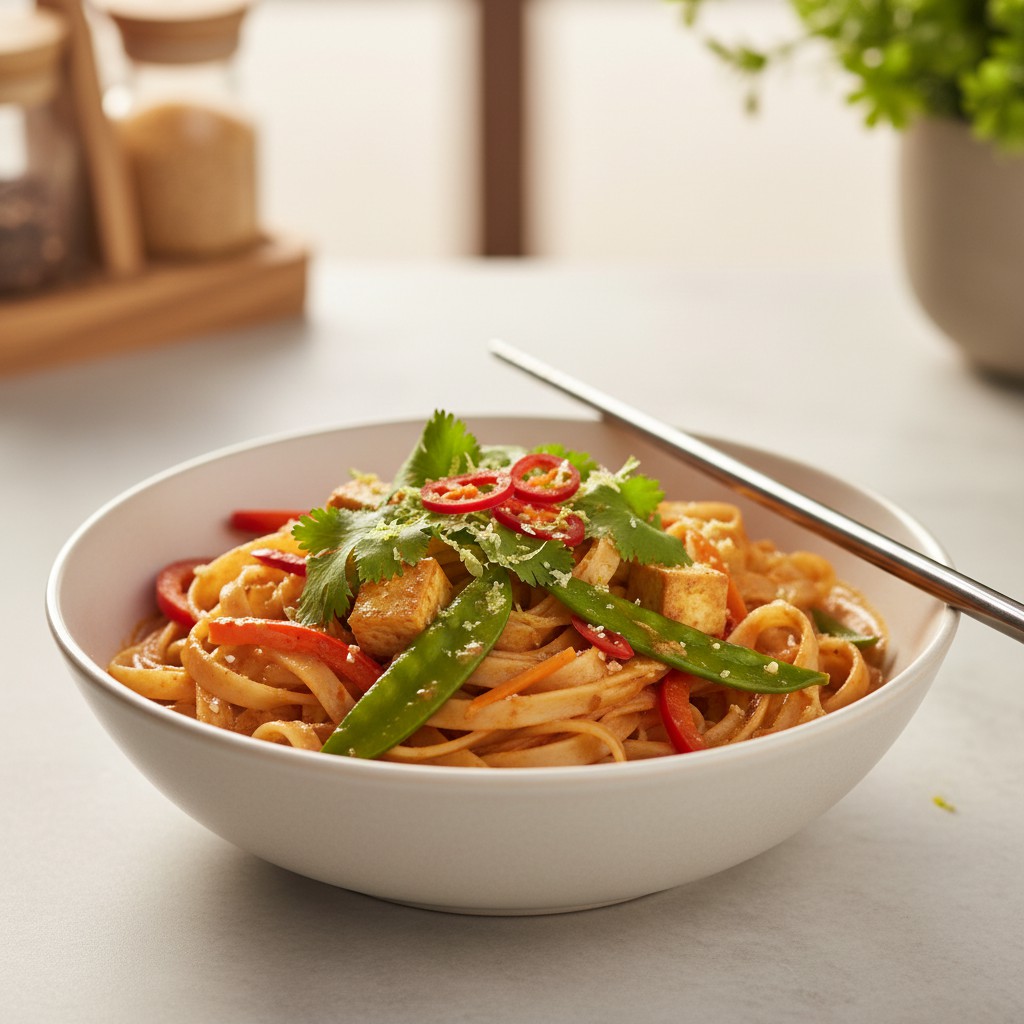 Plat emblématique d’Asie du Sud-Est, les nouilles de riz au curry rouge marient la douceur des nouilles à la puissance aromatique de la pâte de curry rouge, pour un résultat à la fois parfumé, réconfortant et équilibré. Cette recette, inspirée de la tradition thaïlandaise, met en valeur la richesse des épices, la fraîcheur des légumes et la subtilité du lait de coco. Elle offre un excellent compromis entre gourmandise et équilibre nutritionnel, tout en restant accessible à réaliser à la maison. Les astuces de chef permettent d’obtenir une texture de nouilles parfaite et une sauce onctueuse, sans excès de matières grasses ni ingrédients superflus.