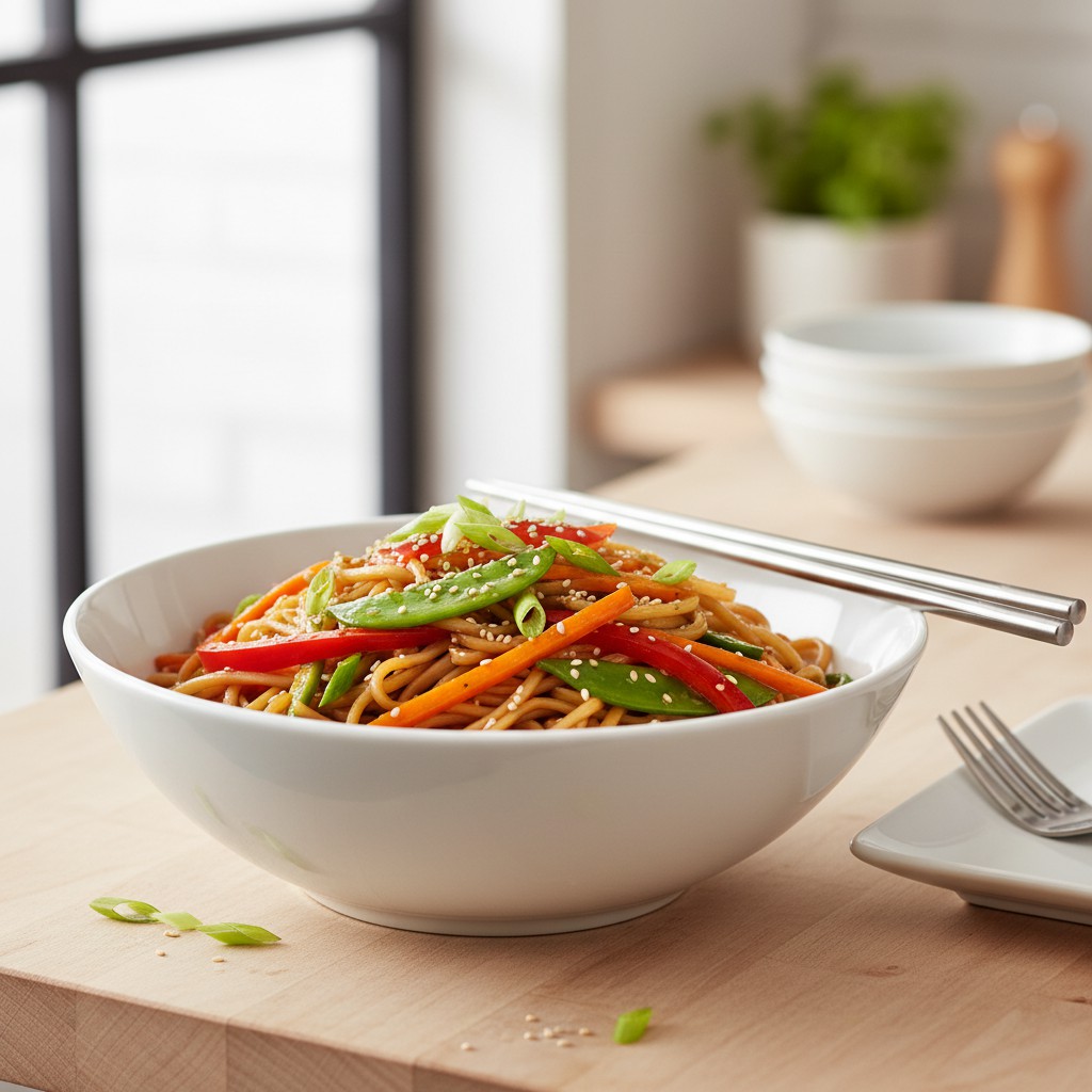 Plat d’inspiration asiatique, les nouilles de riz aux légumes croquants offrent un équilibre parfait entre textures, fraîcheur et saveurs. Cette recette met en avant la rapidité d’exécution, la richesse végétale et la légèreté, tout en respectant l’authenticité des cuissons courtes qui préservent la couleur et le croquant des légumes. Idéale pour un repas complet, digeste et accessible, elle s’adapte facilement aux régimes végétariens ou sans gluten. Les nouilles de riz, originaires d’Asie du Sud-Est, sont ici associées à une poêlée de légumes variés, sautés à feu vif pour conserver leur vitalité. Un plat qui valorise la simplicité, la saisonnalité et la maîtrise du geste.