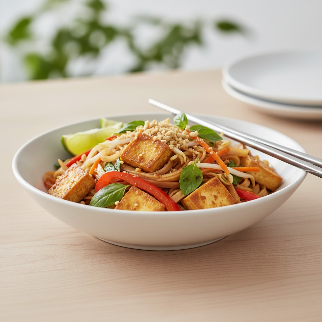 Plat emblématique de la cuisine de rue thaïlandaise, les nouilles thaï au tofu et basilic allient textures moelleuses, parfums d’herbes fraîches et équilibre entre salé, sucré et acidulé. Cette version végétarienne met en valeur le tofu, source de protéines végétales, et le basilic thaï, qui apporte une note anisée caractéristique. Accessible et rapide, ce plat invite à découvrir l’art de l’assaisonnement thaï, tout en restant équilibré et adaptable selon les goûts et les besoins nutritionnels.