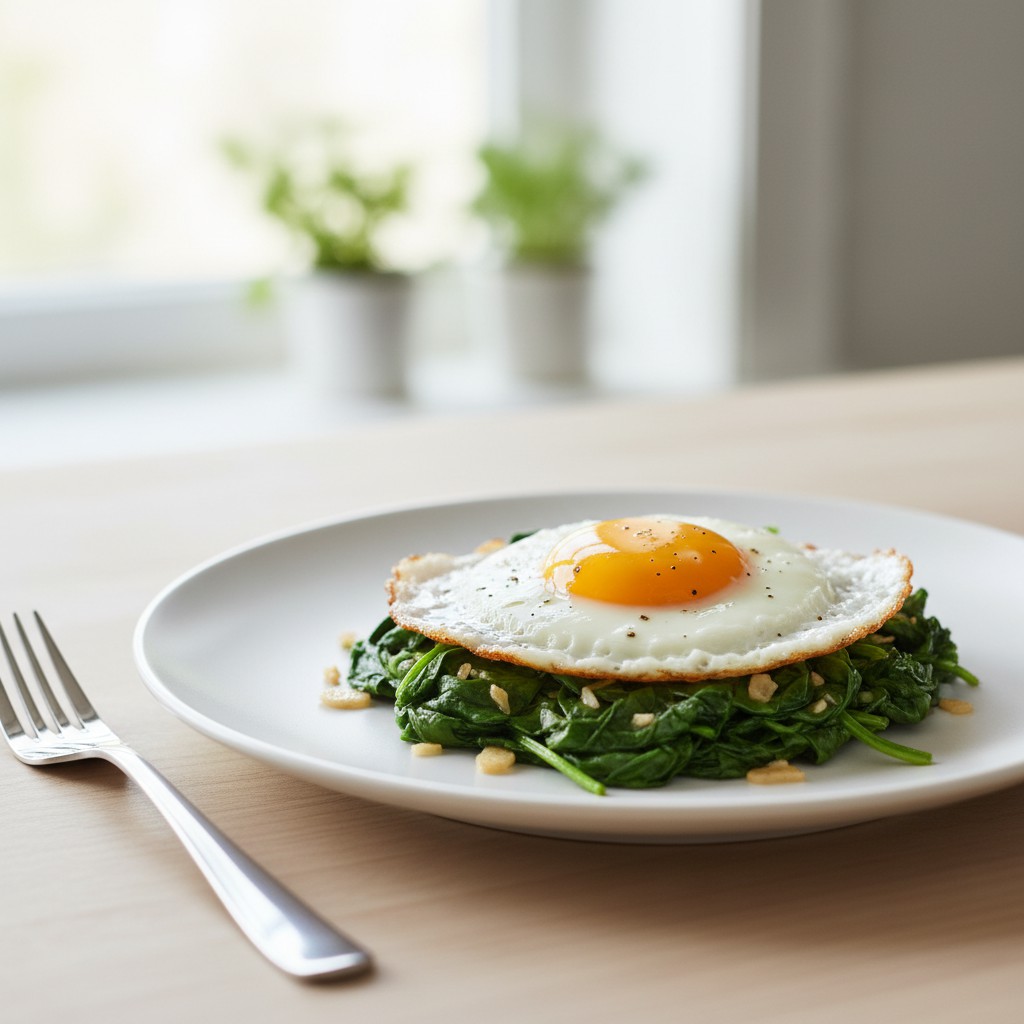 Une recette simple et savoureuse d’œuf au plat servi sur un lit d’épinards sautés à l’ail. Ce plat équilibré et rapide à préparer est parfait pour un repas léger ou un brunch. Les épinards apportent une touche de fraîcheur et de nutriments, tandis que l’œuf ajoute une texture crémeuse et une source de protéines.