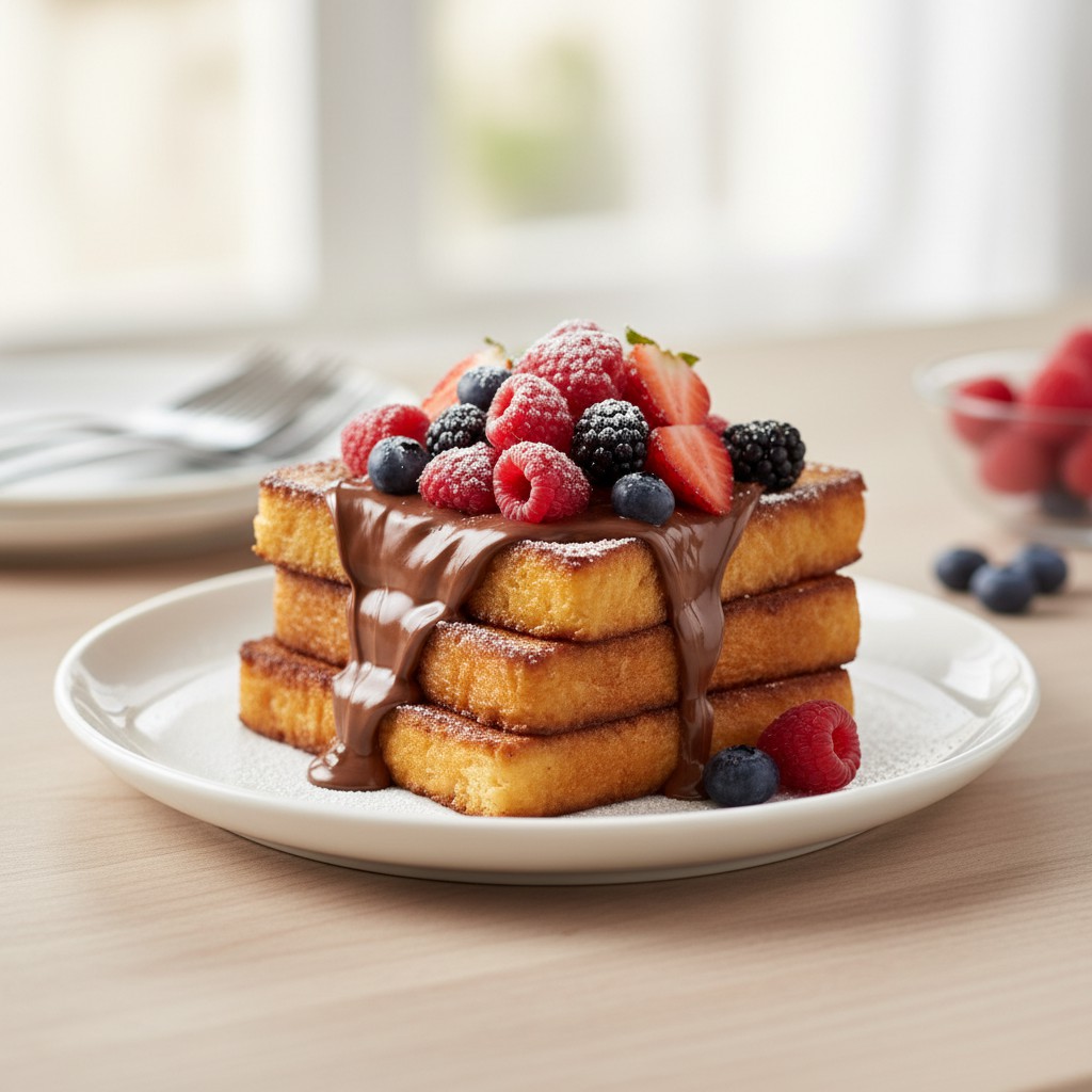 - Utilisez du pain légèrement rassis pour une meilleure tenue. Si les fruits rouges sont surgelés, laissez-les décongeler à température ambiante ou passez-les rapidement à la poêle pour éviter qu’ils ne détrempent le pain. Pour une version plus équilibrée, réduisez la quantité de Nutella ou remplacez-le partiellement par une purée de noisettes ou d’amandes.