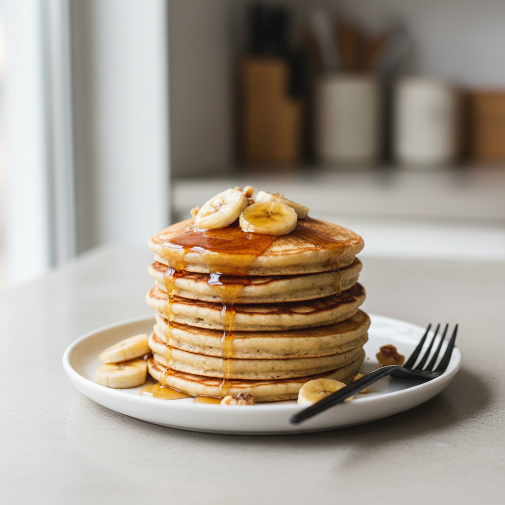Découvrez une recette simple et équilibrée de pancakes à la banane, parfaits pour un petit-déjeuner ou un brunch gourmand. Ces pancakes moelleux, naturellement sucrés grâce à la banane, sont sublimés par un filet de sirop d’érable. Une option saine et rapide à préparer, idéale pour toute la famille.