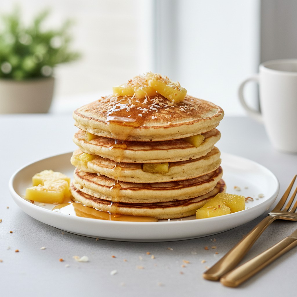 Ces pancakes au lait de coco et morceaux d’ananas apportent une touche exotique à votre petit-déjeuner ou brunch. Moelleux et légèrement sucrés, ils sont parfaits pour une recette originale et facile à réaliser. Inspirés des saveurs tropicales, ils allient douceur et fraîcheur.