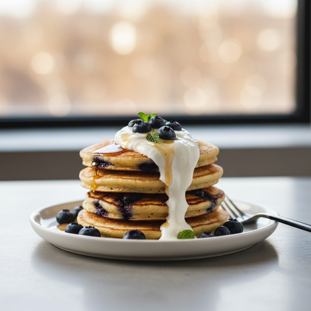 Ces pancakes moelleux aux myrtilles, servis avec du yaourt, allient douceur, fraîcheur et équilibre nutritionnel. Inspirés de la tradition nord-américaine, ils offrent une texture aérienne grâce à l’ajout de yaourt dans la pâte, qui apporte aussi une légère acidité et un supplément de protéines. Les myrtilles, riches en antioxydants, apportent une touche fruitée et colorée. Cette recette est idéale pour un petit-déjeuner gourmand ou un brunch convivial, tout en restant accessible et saine.