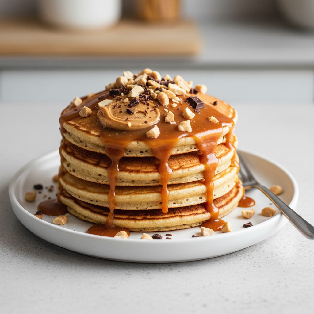 Ces pancakes façon Snickers allient la gourmandise du célèbre chocolat à la convivialité d’un petit-déjeuner maison. Moelleux, riches en saveurs de cacahuète, chocolat et caramel, ils offrent un équilibre entre plaisir et nutrition si l’on dose bien les garnitures. Cette recette s’inspire du Snickers, barre née dans les années 1930 aux États-Unis, et la revisite en version brunch, sans excès de sucre ni d’ingrédients gadgets. Idéale pour un brunch ou un goûter réconfortant, elle met l’accent sur la texture, l’intensité aromatique et la maîtrise des associations sucrées-salées.