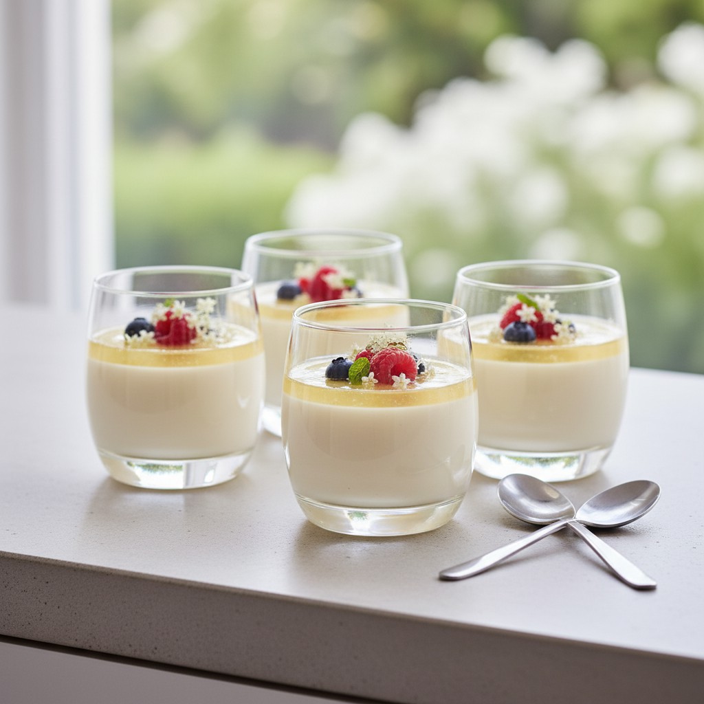 Une panna cotta délicate et parfumée, alliant la douceur de la noix de coco à la fraîcheur florale du sirop de sureau. Cette recette simple et élégante est idéale pour un dessert léger et raffiné, inspiré des saveurs estivales.