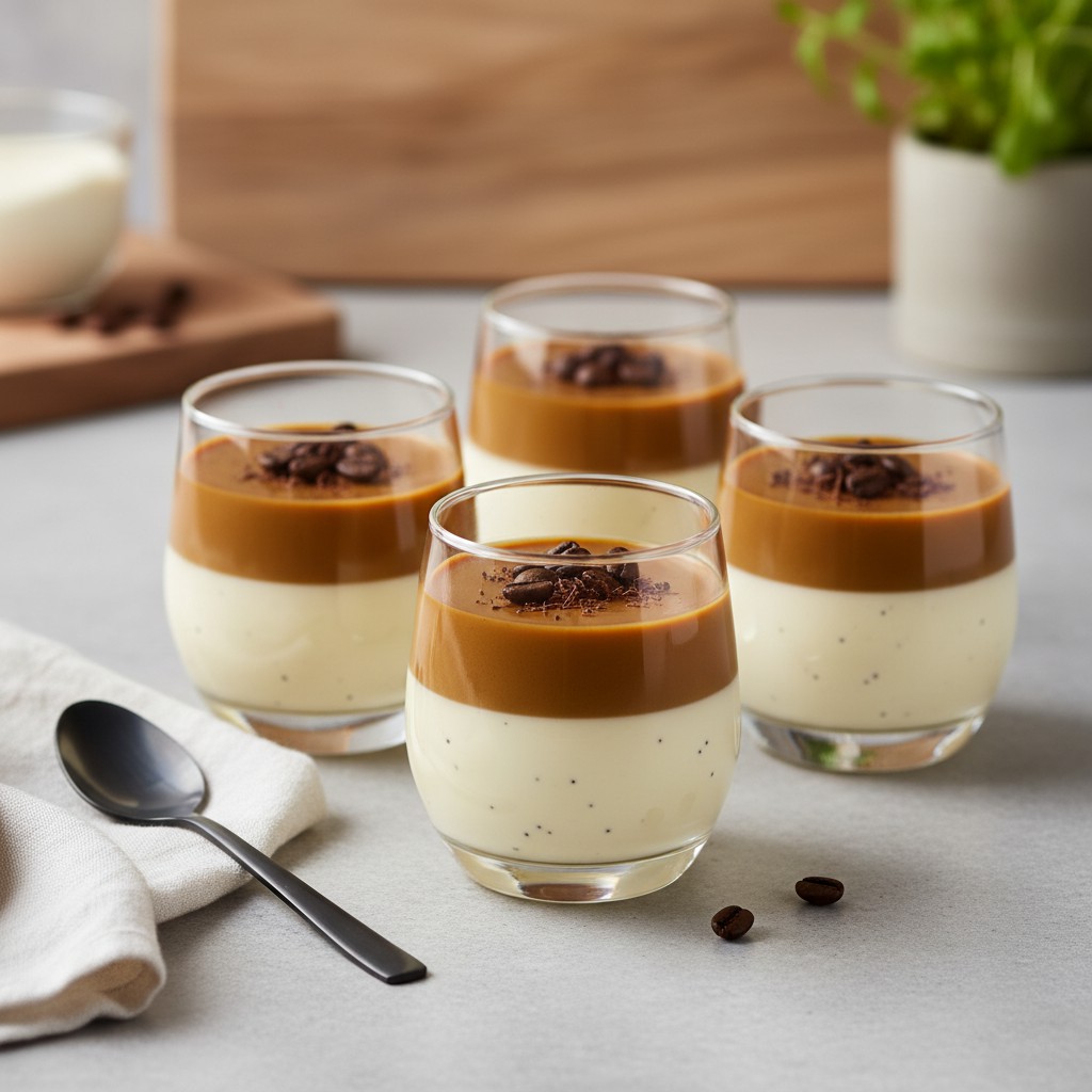 La panna cotta à la vanille et café est un dessert italien emblématique, alliant la douceur lactée de la crème infusée à la vanille à l’intensité aromatique du café. Cette alliance subtile offre une texture soyeuse et un équilibre de saveurs, sans excès de sucre ni lourdeur. Originaire du Piémont, la panna cotta (« crème cuite ») est appréciée pour sa simplicité et sa capacité à mettre en valeur des ingrédients de qualité. Ici, la gélatine est utilisée avec justesse pour obtenir une tenue parfaite, ni trop ferme ni trop molle. Cette version marie tradition et modernité, tout en restant accessible à réaliser à la maison.