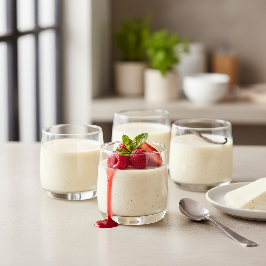 Découvrez une version légère et végétalienne de la panna cotta, réalisée avec du lait de soja et parfumée à la vanille. Cette recette simple et rapide est idéale pour un dessert onctueux et équilibré, parfait pour les amateurs de cuisine saine et gourmande.