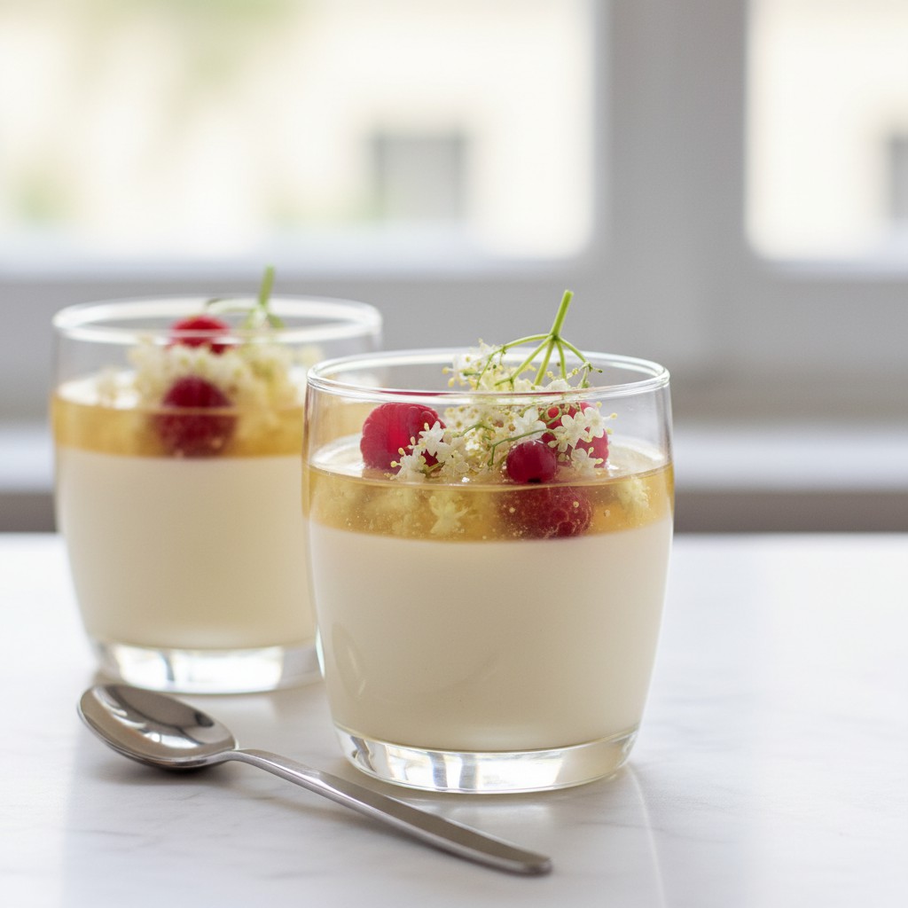 Découvrez une panna cotta délicatement parfumée au sirop de sureau, une recette italienne revisitée avec une touche florale. Facile à préparer, ce dessert allie douceur et fraîcheur, parfait pour une fin de repas légère et élégante.