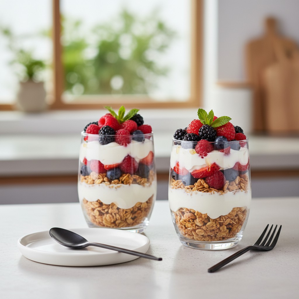 Découvrez une recette simple et équilibrée de parfait aux fruits rouges et yaourt grec. Ce dessert frais et léger est parfait pour un petit-déjeuner gourmand, un brunch ou une collation saine. Inspiré des traditions méditerranéennes, il allie la douceur du yaourt grec à l’acidité des fruits rouges, le tout rehaussé par le croquant du granola.