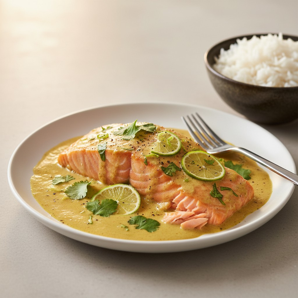 Découvrez une recette simple et rapide de pavé de saumon au curry et lait de coco. Ce plat d’inspiration asiatique marie la douceur du lait de coco à la chaleur des épices, pour un repas équilibré et savoureux. Parfait pour un dîner léger et gourmand.
