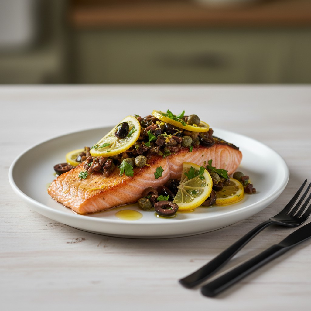 Une recette simple et savoureuse de pavé de saumon accompagné d’une sauce méditerranéenne à base d’olives, câpres et citron. Ce plat équilibré et riche en oméga-3 est parfait pour un repas sain et rapide à préparer.
