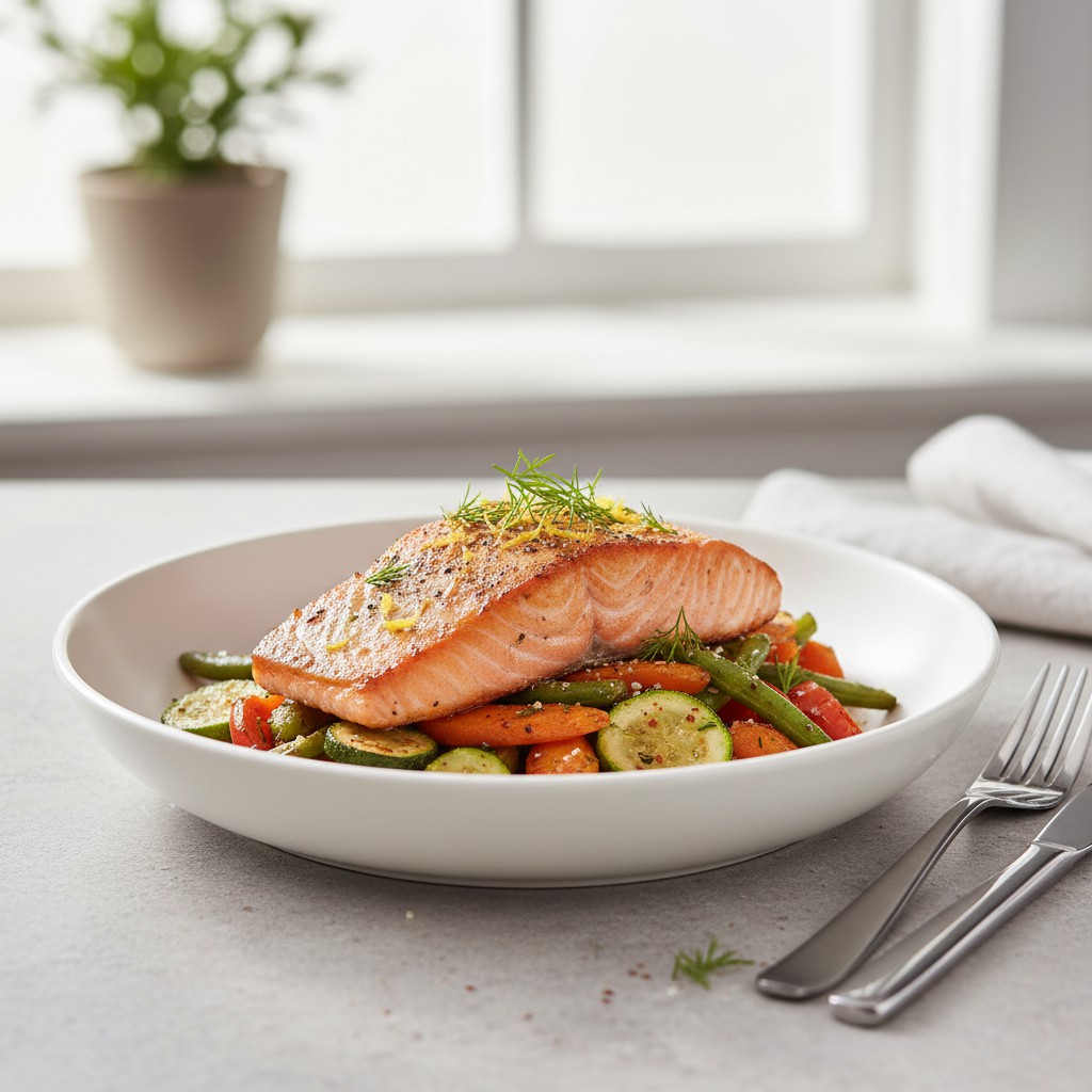 Découvrez une recette simple et équilibrée de pavé de saumon rôti accompagné de légumes de saison. Ce plat sain et savoureux met en valeur la fraîcheur des ingrédients tout en étant facile à préparer. Parfait pour un repas nutritif et gourmand.